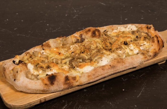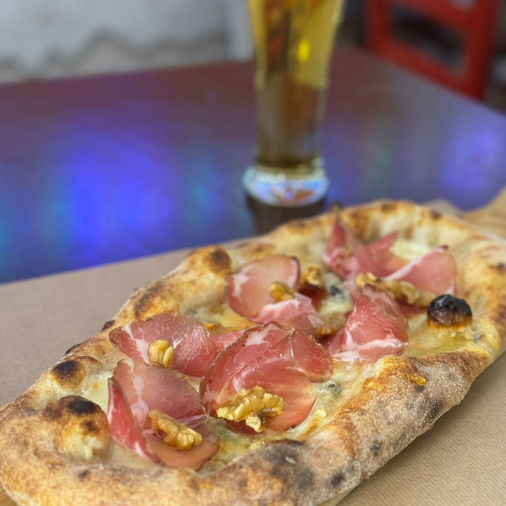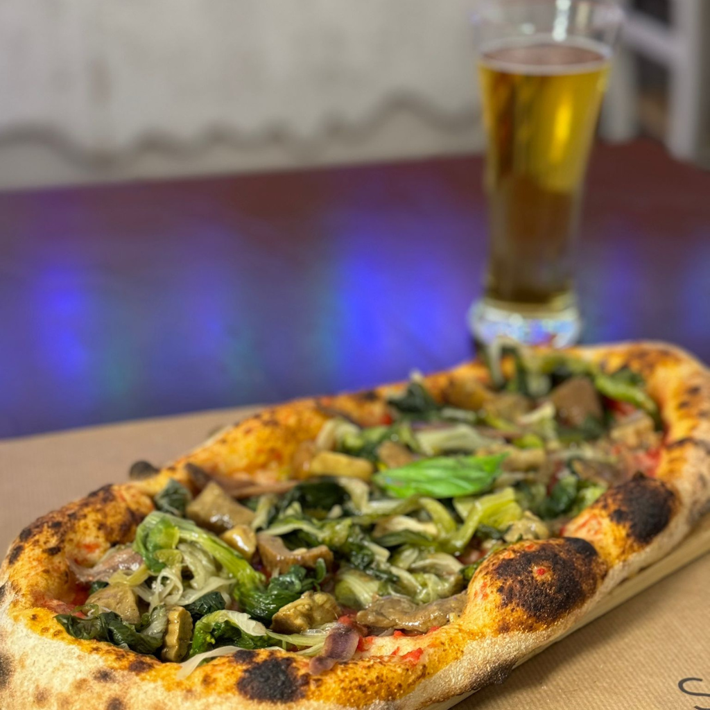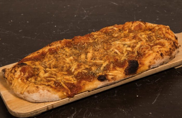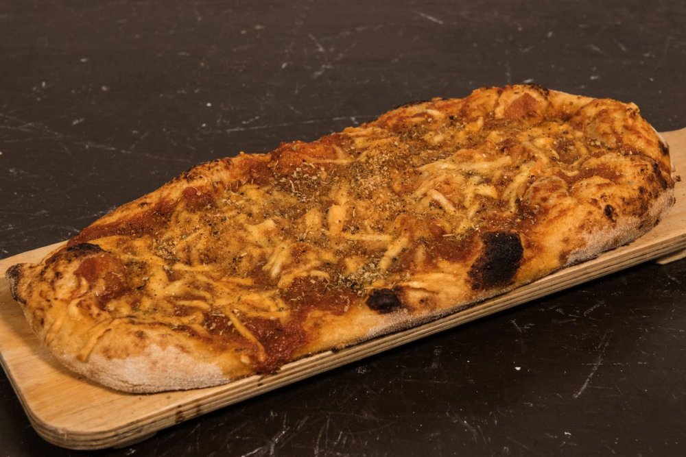 Farina di tipo 0 con germe di grano, impasto ottenuto con una tecnica di perfezionamento di tipo Biga, che la rende morbida e dal cornicione pronunciato.