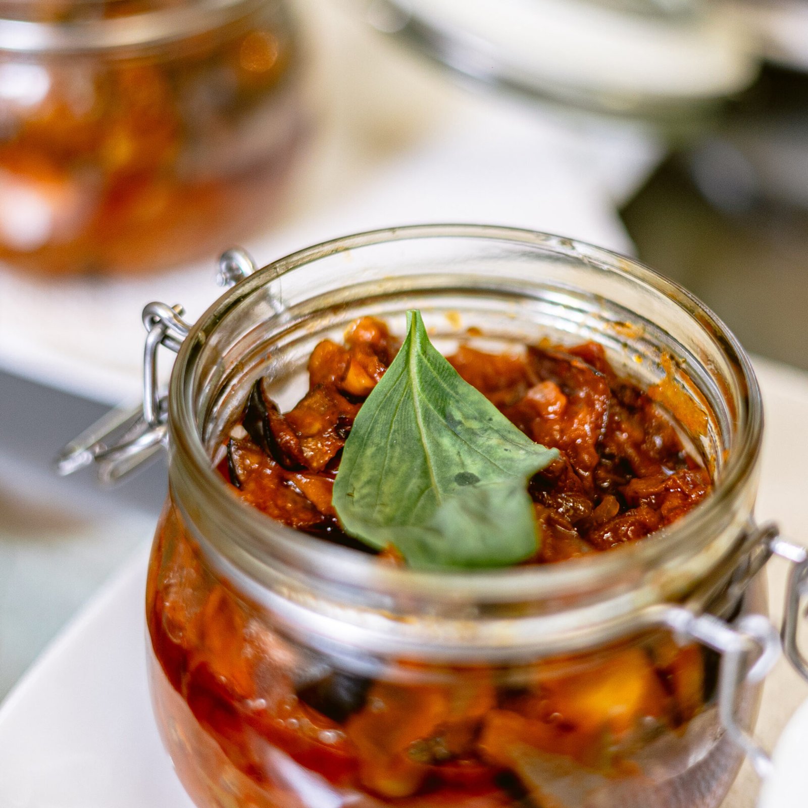 Salsa e concentrato di pomodoro, Melanzane nostrane, Olive verdi, Capperi, Sedano, Cipolla bianca, Olio extravergine di oliva