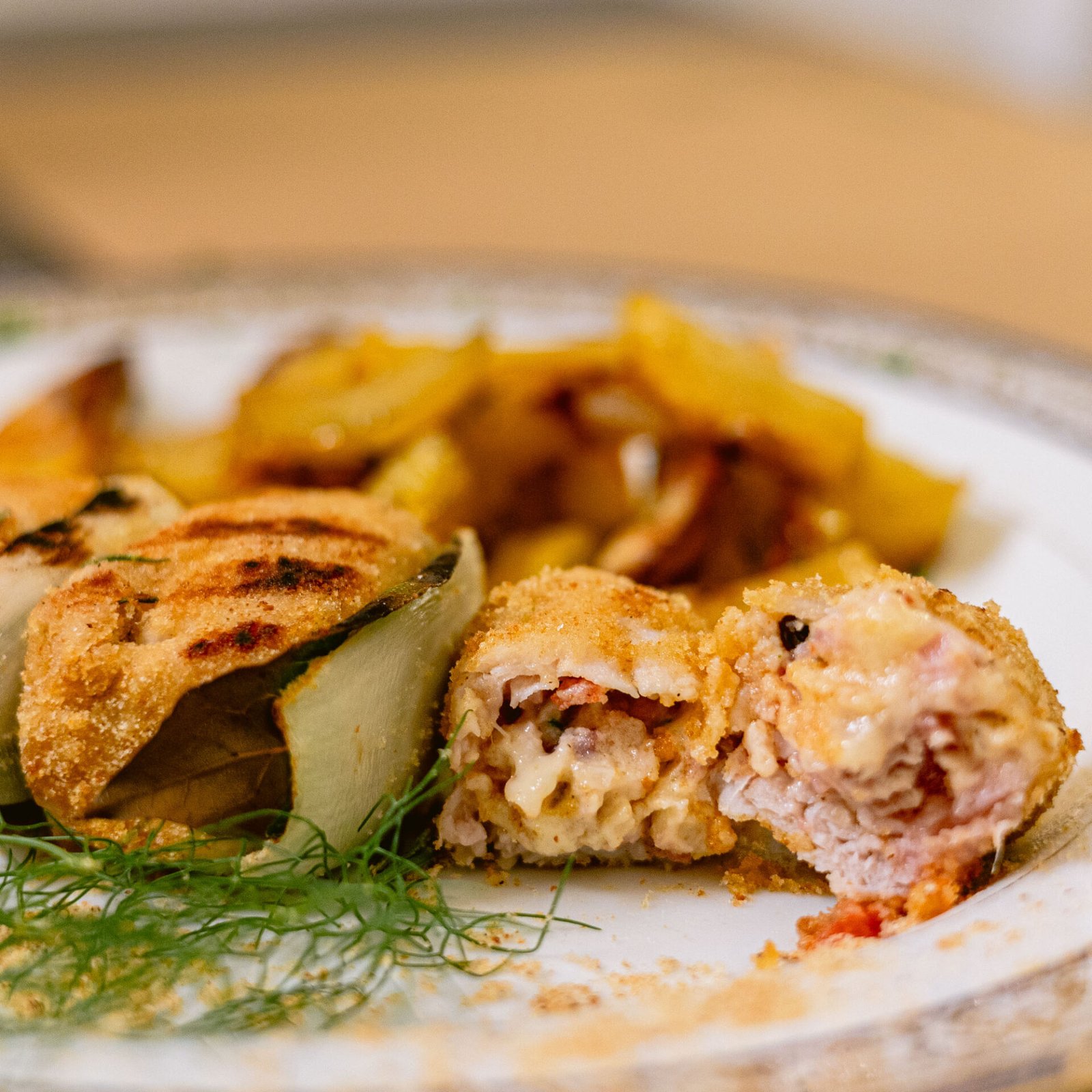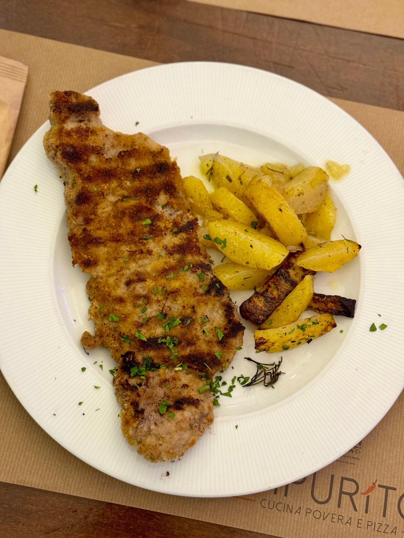Mozzarella di Latte vaccino, Patate al forno, Semi di finocchio, Coppa di Suino dei Nebrodi (Presidio Slow Food), Olio extravergine d'oliva BIO Sicilia