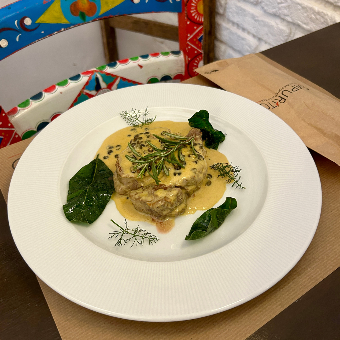 Filetto grigliato o al Pepe verde o ai Funghi porcini, Olio extravergine d'oliva Siciliano
