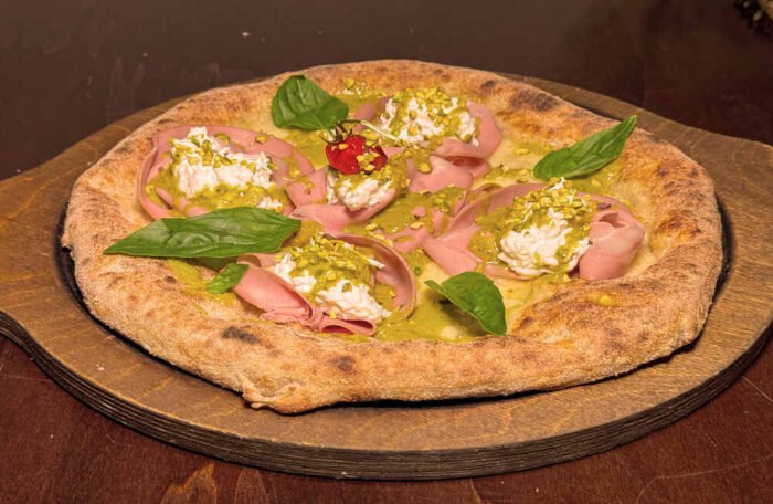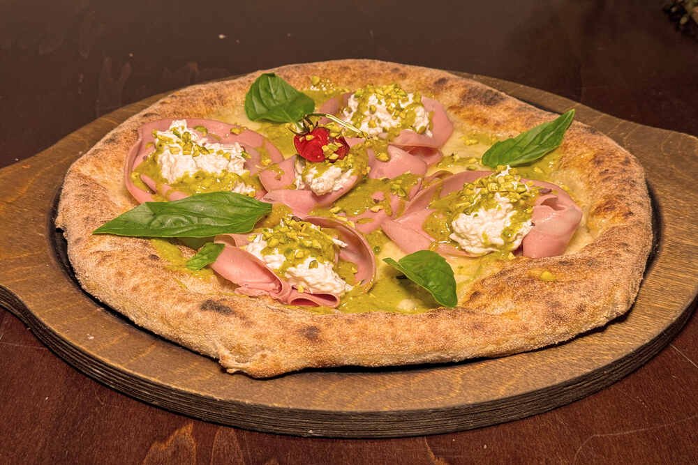 Mozzarella di bufala DOP, Mortadella Levoni, Pesto di pistacchi, Burratina di bufala, Olio extravergine d'oliva BIO Sicilia