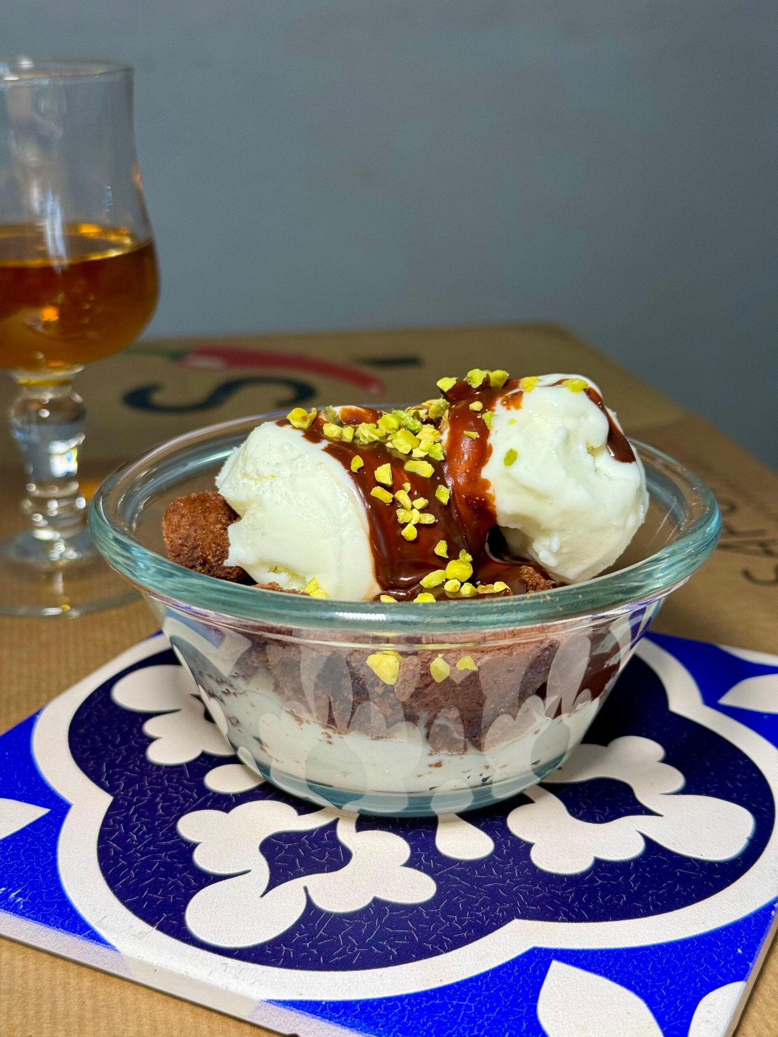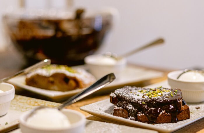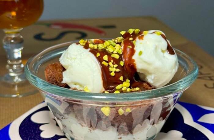 Ricotta biologica di Gangi, Gelato Fiordilatte, Pan di Spagna al Cioccolato
