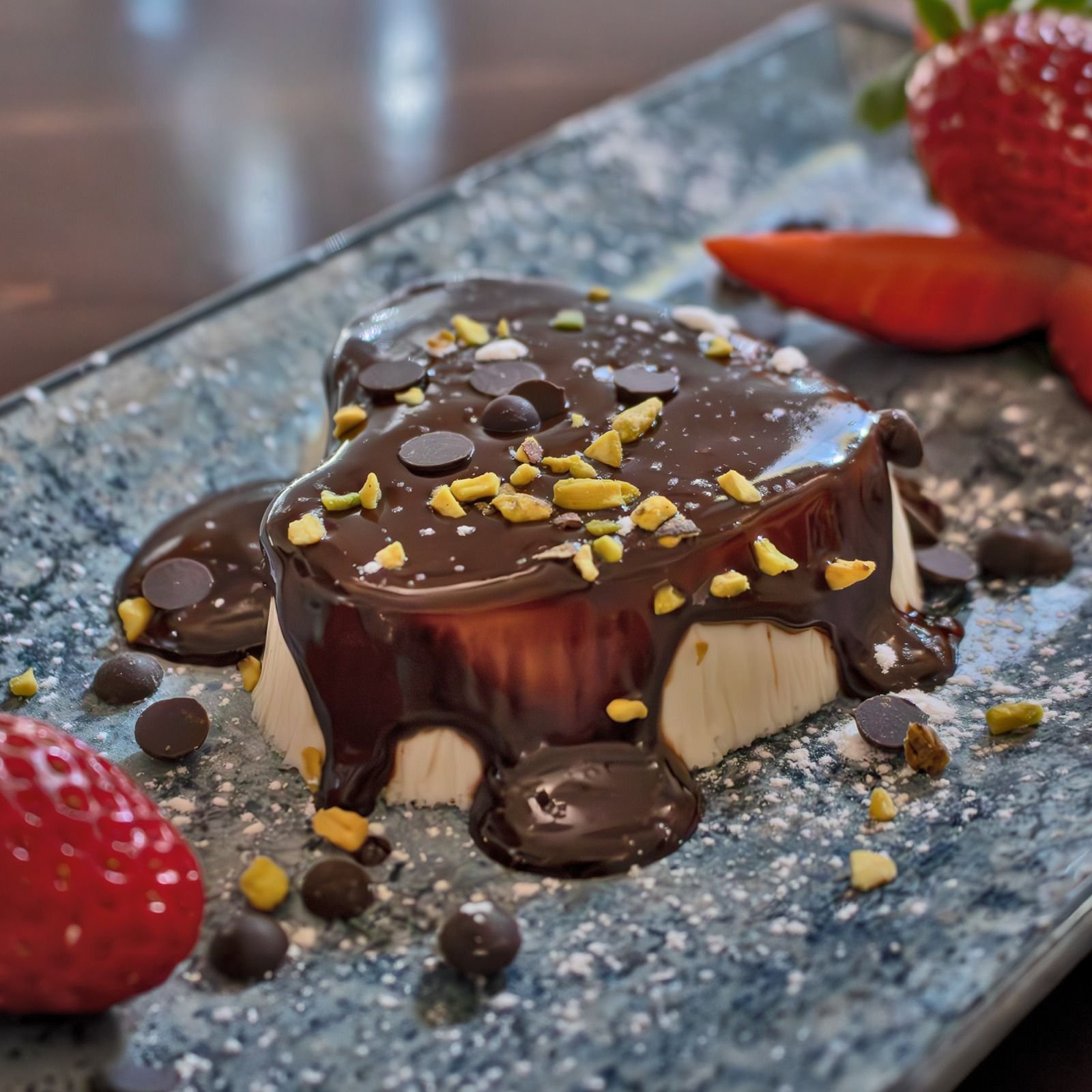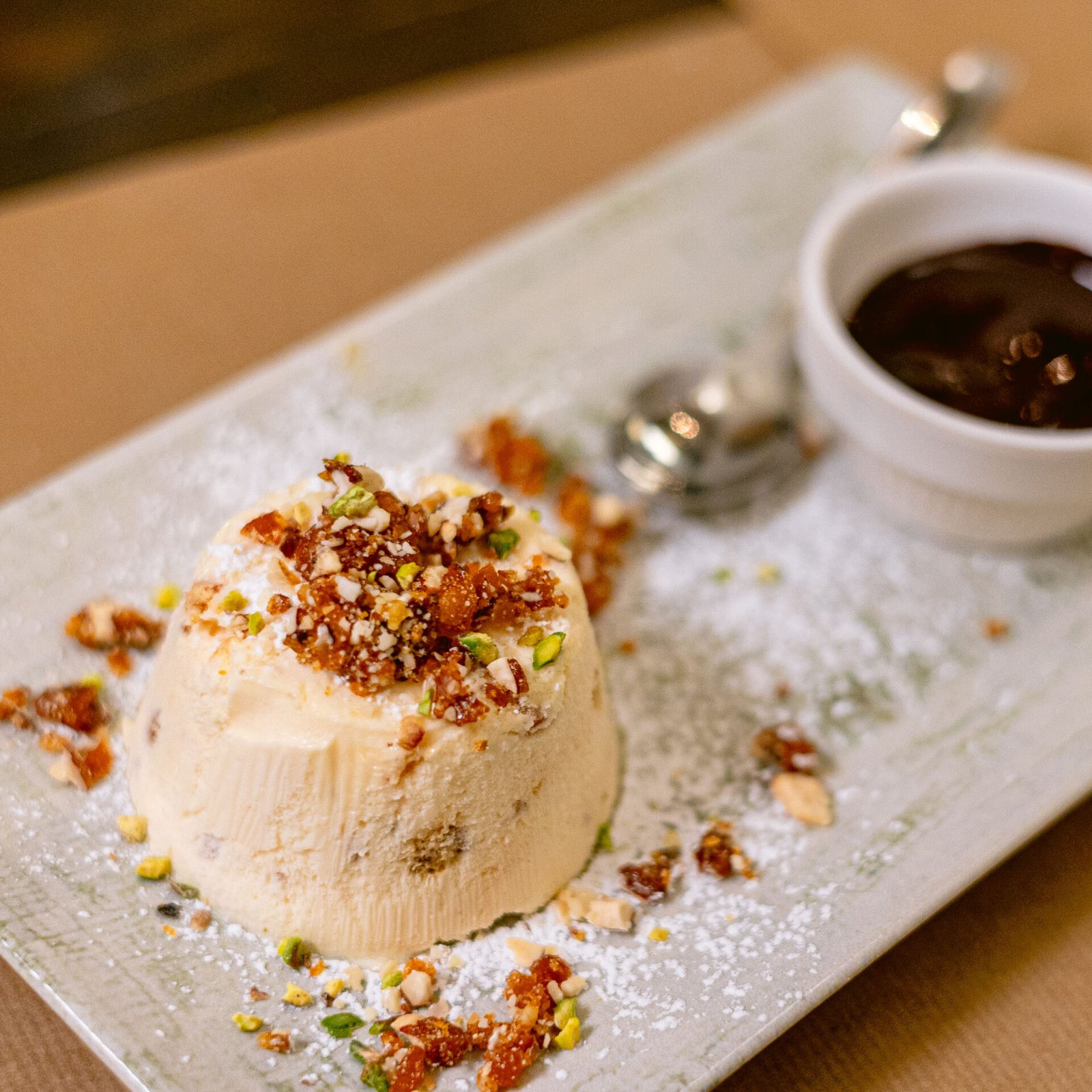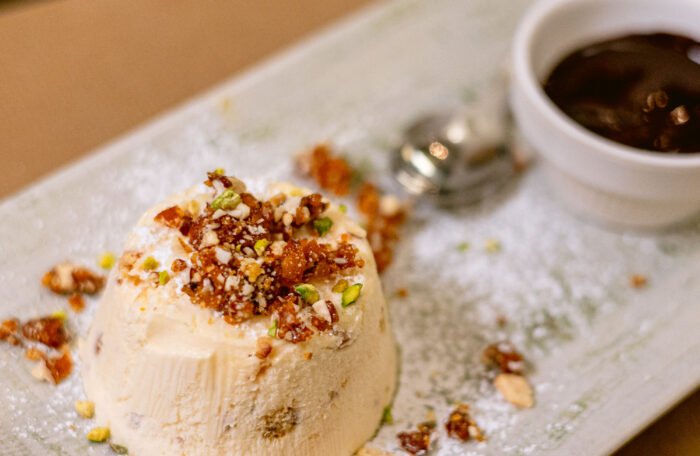 Parfait di Mandorle con colata di Cioccolato fondente