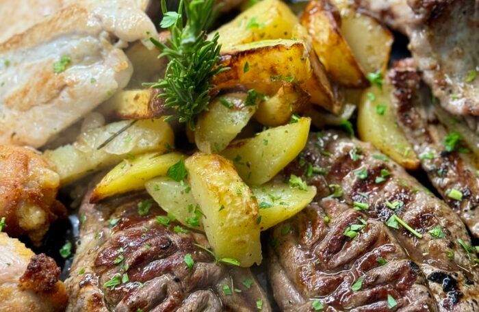 Trinca, Salsiccia, Involtini di Carne, Pollo, Patate al forno, Verdure grigliate, Olio extravergine d'oliva BIO Sicilia
